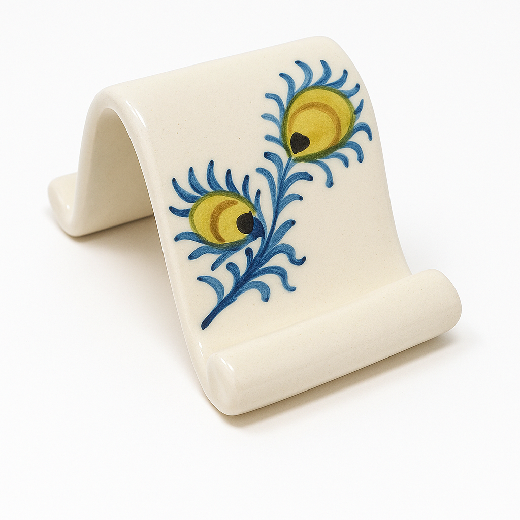his ceramic stand has a beautifully handcrafted Italian aesthetic, likely made by artisans who specialize in traditional painted ceramics.