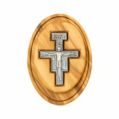 Olive Wood Oval With Inlayed Metal San Damiano Cross - MAGNET